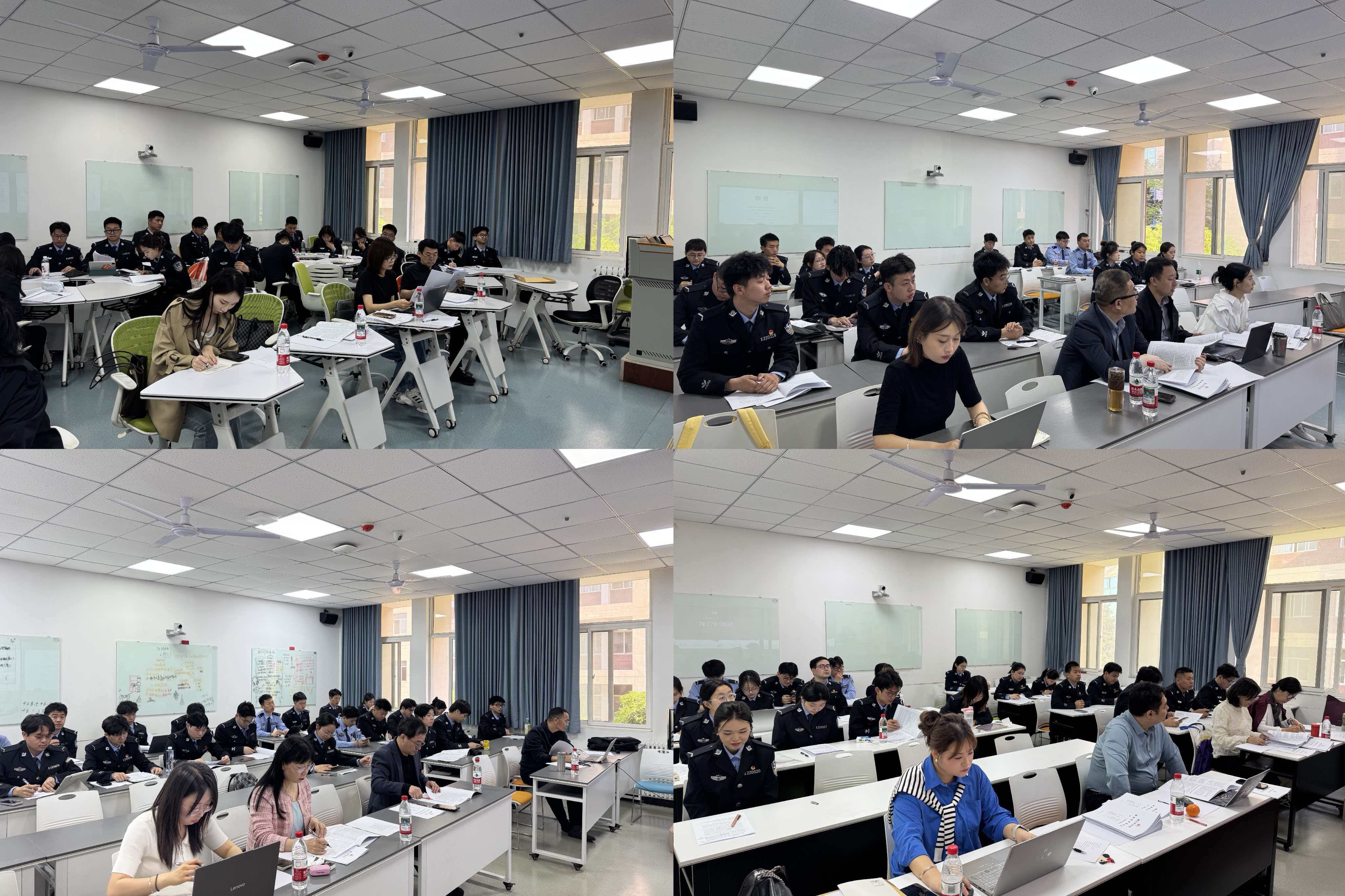 答辩现场秩序井然,学生统一身着警服,依次就论文的选题意义、研究方法、核心观点与创新之处进行陈述。答辩评委针对论文内容提出问题并给出修改建议,学生应答思路清晰,与评委进行了有效的学术互动。整个答辩过程采用线上系统进行记录和管理,保证了流程的规范与高效。